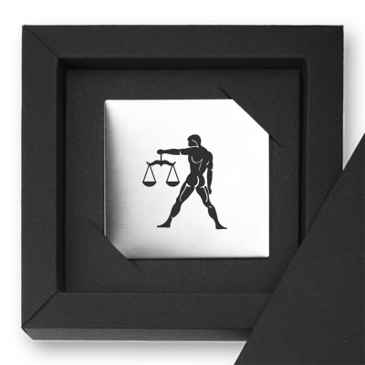 Edelstahl-Magnet "Waage", 5,5 x 5,5 cm, in Geschenkverpackung, Gravurempfehlung: Initialen auf Magnet / Schild auf Verpackungsaußenseite