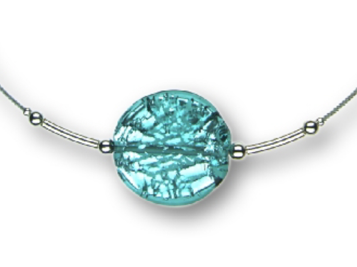 Kombination handgewickelte Lampenperlen mit Metall-Schmuckelementen. Das Schmuckseil ist aus 1,4 mm starkem Edelstahl, farblos beschichtet mit Steckverschluss. Lieferbare Längen: 40, 42, 45 und 50 cm. Die Schmuckelemente sind gegen Verrutschen fixiert.
