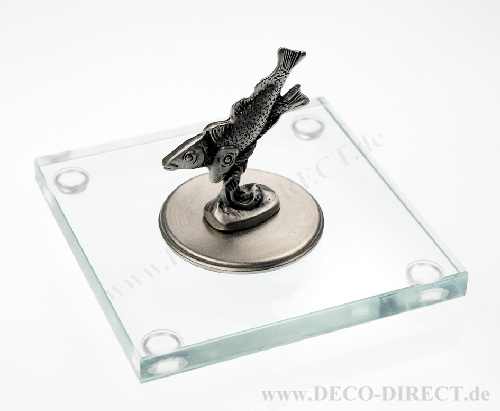 DECO DIRECT® Zinnminiatur Fische auf Glassockel 10 x 10 cm, Gravurempfehlung: auf Glassockel, Bestellnummer: 40900301